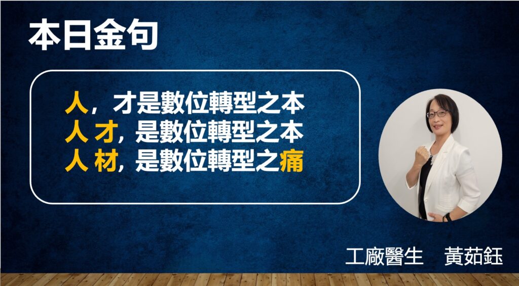 工廠醫生-黃茹鈺顧問說,轉型不需要一直花錢買系統,而是用現有的資源、最低的成本、有效的發揮、轉型的效益!在時代快速發展的現在,太多企業工廠急著想要快速轉型,以為買系統可以解決問題,但ERP系統本身沒辦法解決問題,買系統不會用又造成更多的問題。